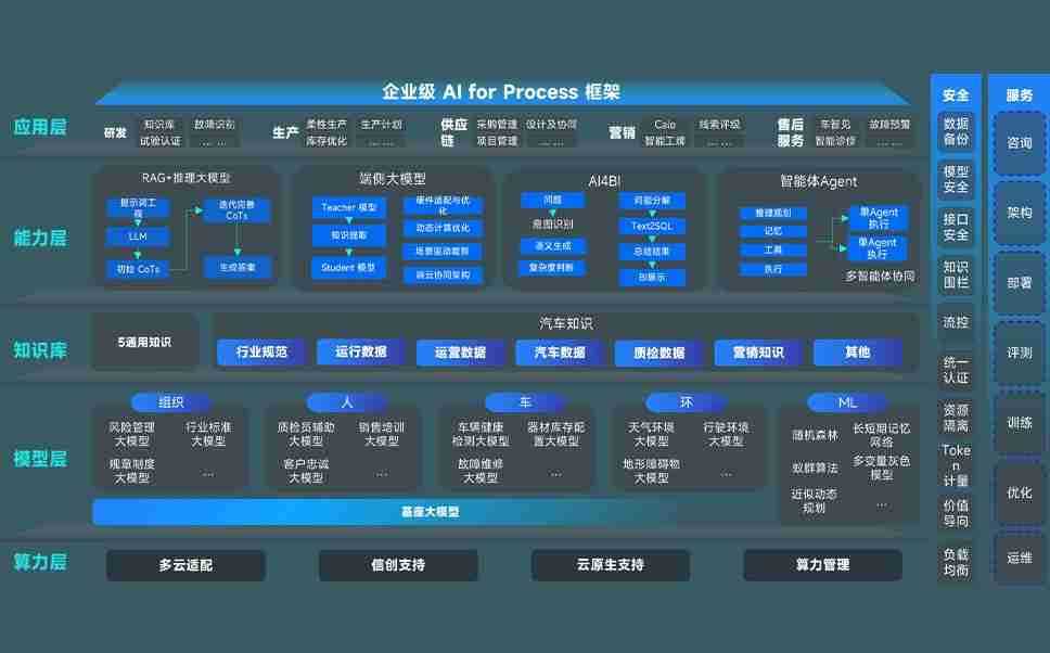 端到端的一站式AI工作空间深度融合了从企业战略规划到日常经营的全流程业务板块,,,定向解决车企内部领域多、、、、部门多、、、链条长、、、场景碎片化等难题,,,支持车企快速构建以AI为核心的生产力写作体系,,实现任务执行与AI能力的无缝集成与交互